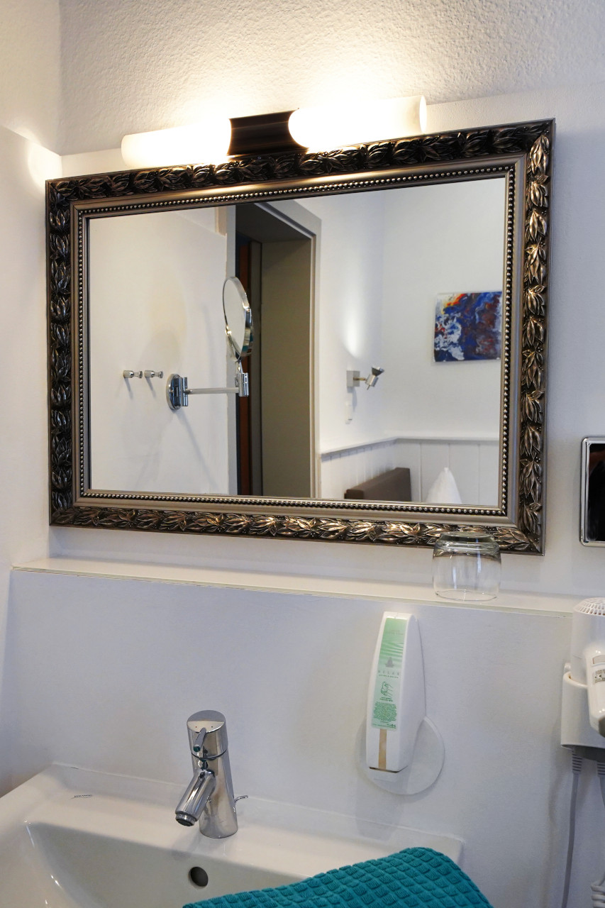 Das Zimmer verfügt über Kabel-TV, ein Telefon, kostenfreies W-Lan, Haartrockner, ein Waschbecken ist im Zimmer und ein Schreibtisch.