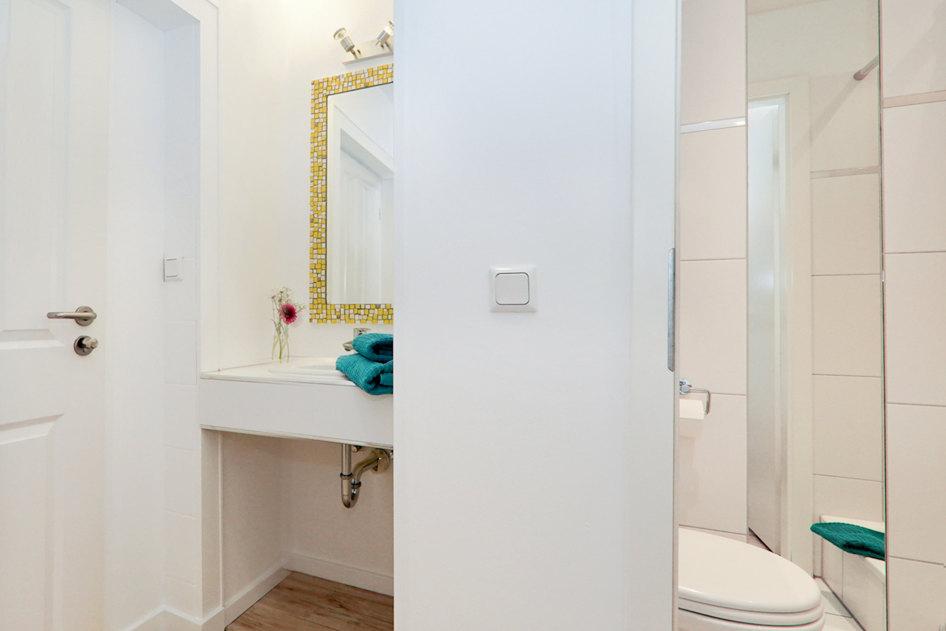 Das Zimmer verfügt über Kabel-TV, ein Telefon, kostenfreies W-Lan, Haartrockner, ein Waschbecken ist im Zimmer und ein Schreibtisch.